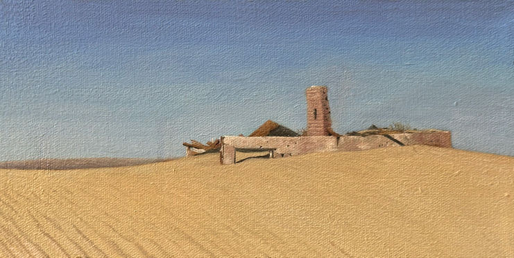 I love painting Sun-baked abandoned structures and crumbling walls swallowed up by sand and sage, barbed and unapproachable. What we've built and how time has reclaimed it always catches my eye.